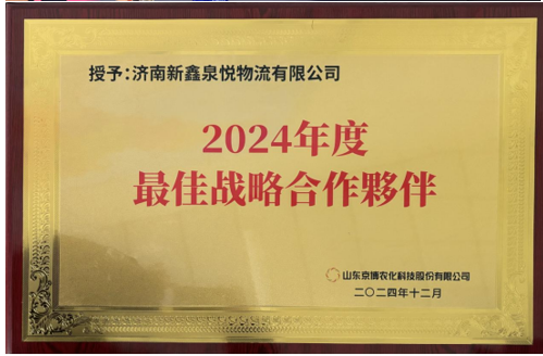 2025年1月,新鑫泉悅物流公司受邀參加了山東省京博農(nóng)化科技股份有限公司組織的物流戰(zhàn)略合作年度會議,并獲得了該公司授予的“2024年度最佳戰(zhàn)略合作伙伴”榮譽稱號。